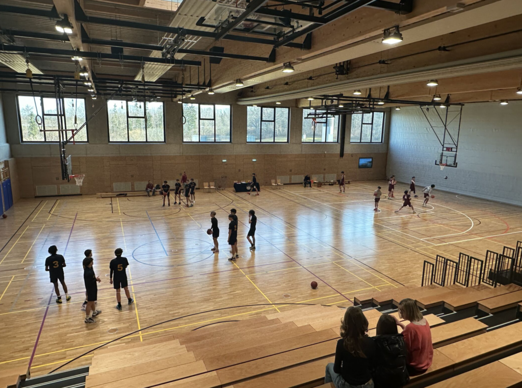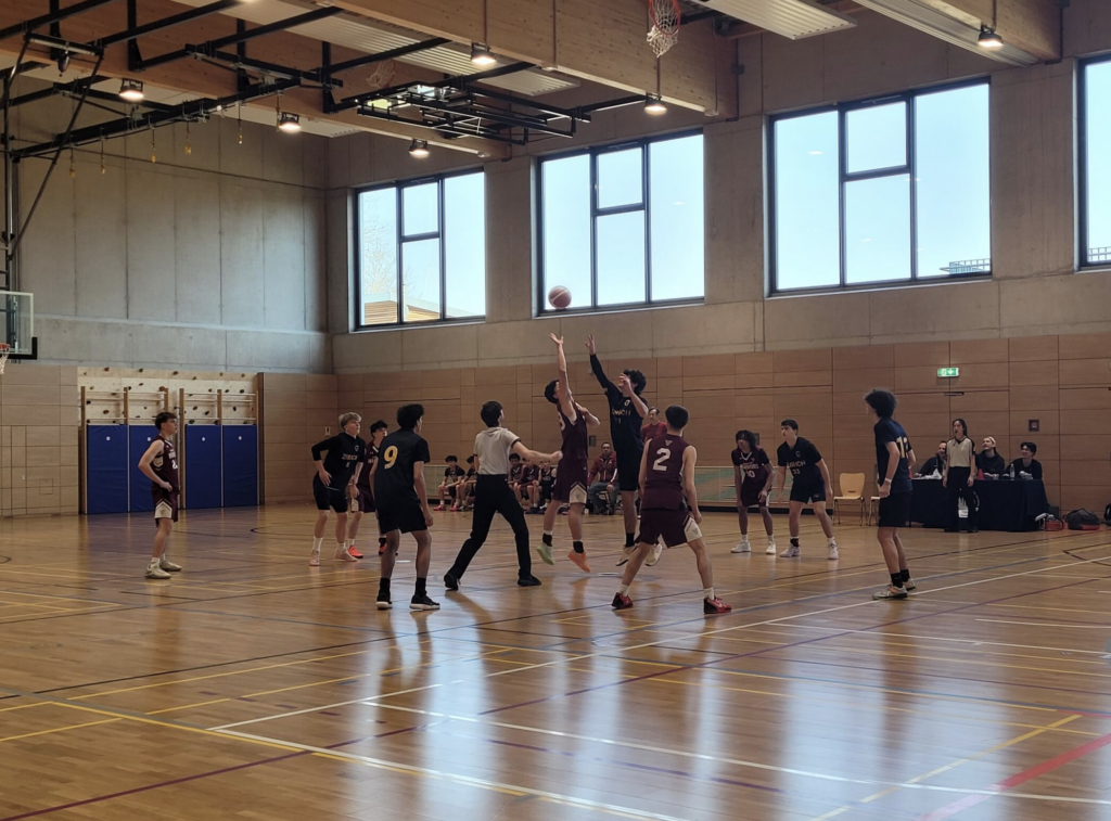 FIS and ZIS senior school basketball teams warming up before their ISST basketball game against each other. Luca B.,Grade 9/BuchofBulletin. Friday March 7th.