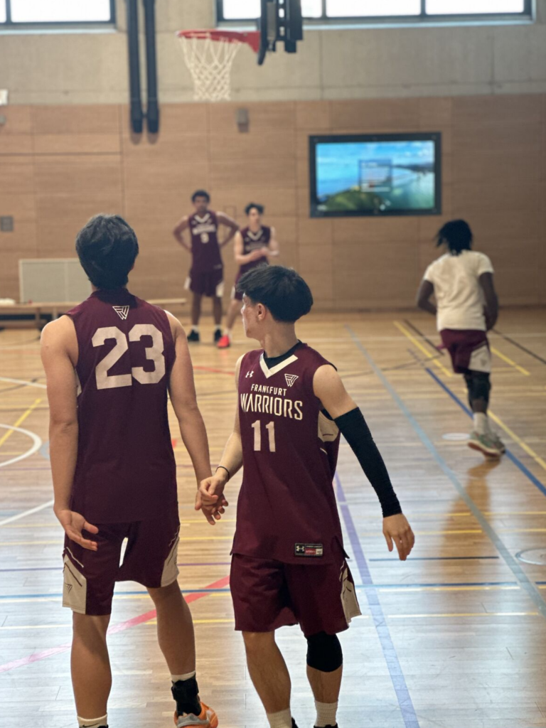 FIS senior school basketball players warming up before their ISST basketball game against ZIS. Luca B.,Grade 9/BuchofBulletin. Friday March 7th.