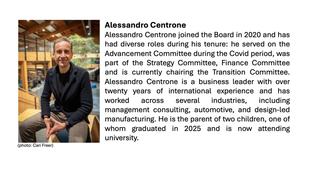 “Joining the Board is also a tremendous opportunity to develop professional competencies by working within a highly professional governance body, while learning about the organisation, pedagogical, and operational model of an international school. It is a unique way to grow professionally while contributing meaningfully to a valuable community”, said Alessandro Centrone.